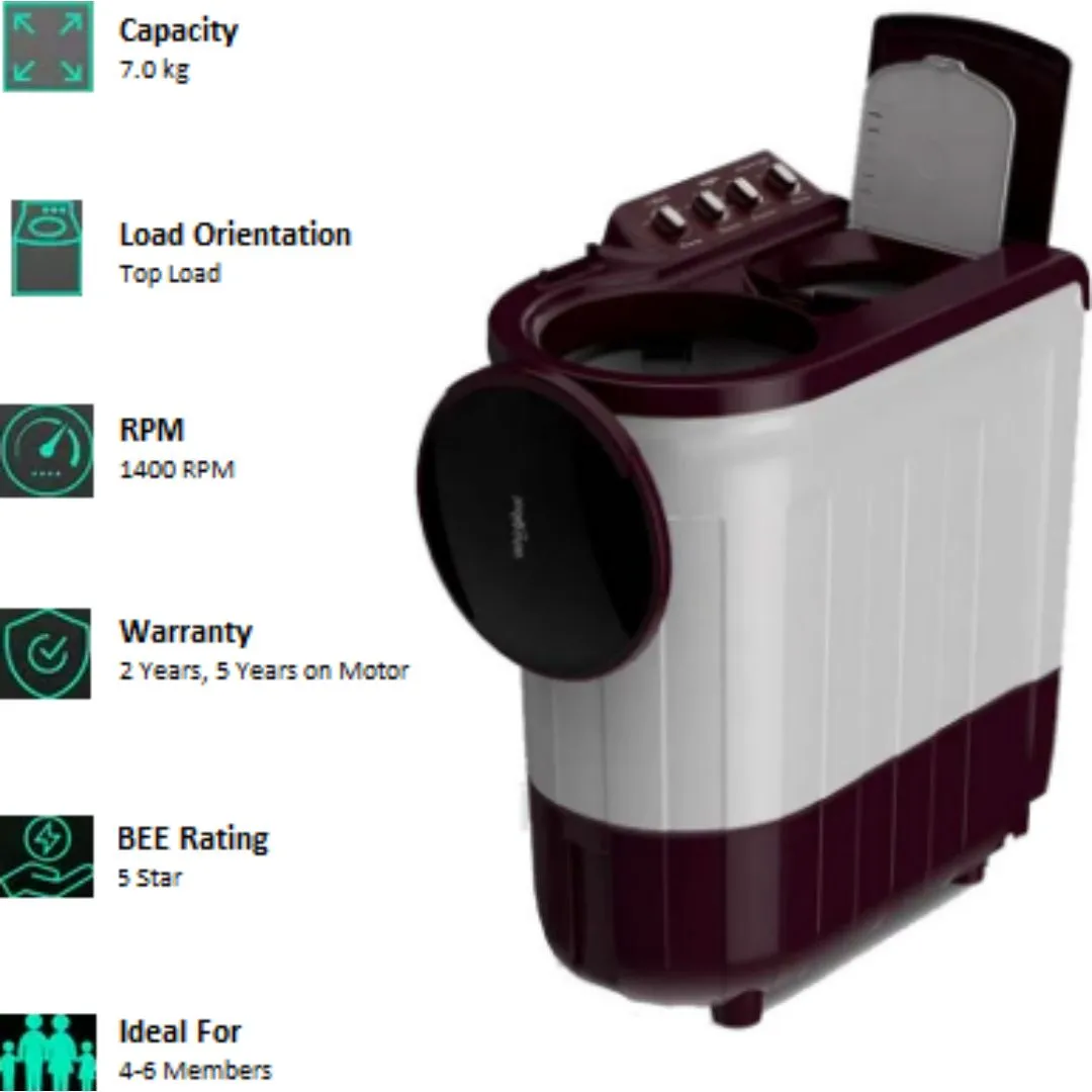 - 7.0 kg Capacity: Ideal for small to medium families.