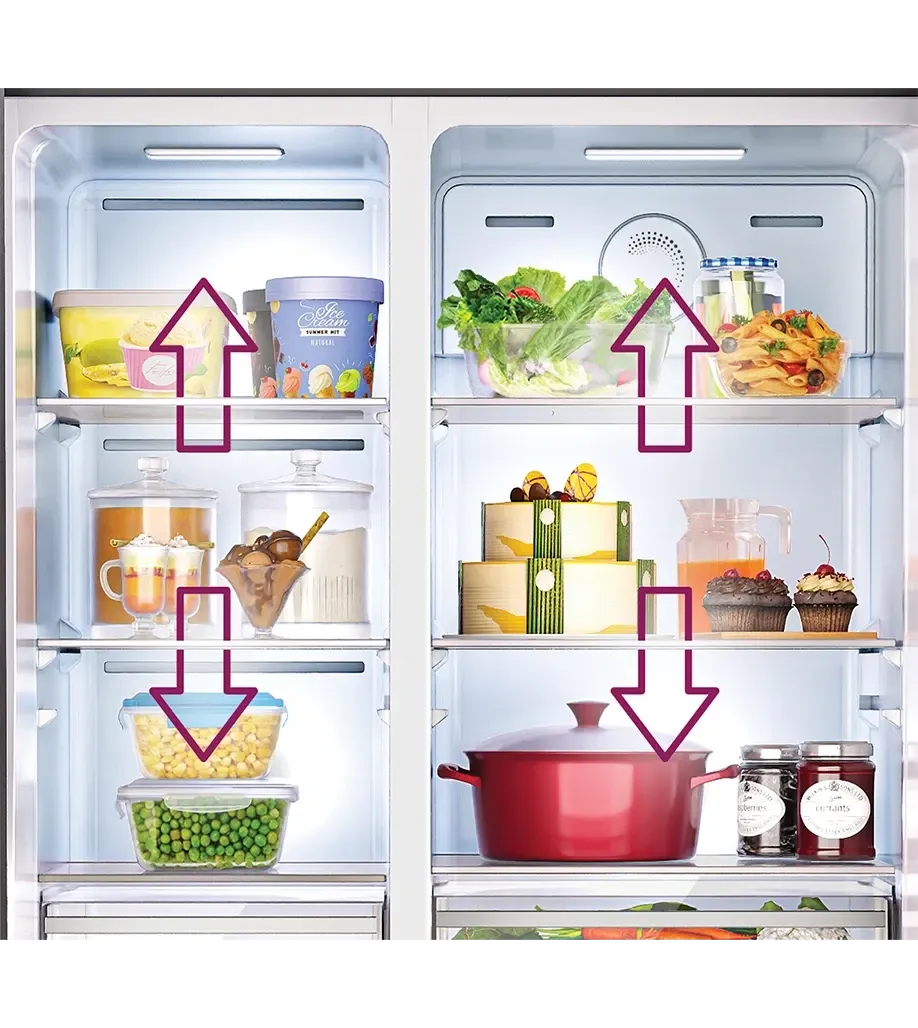 This Godrej 600L side-by-side refrigerator delivers premium storage with advanced cooling performance. Designed for large families, it features a stylish velvet finish, spacious compartments, and efficient temperature management.
