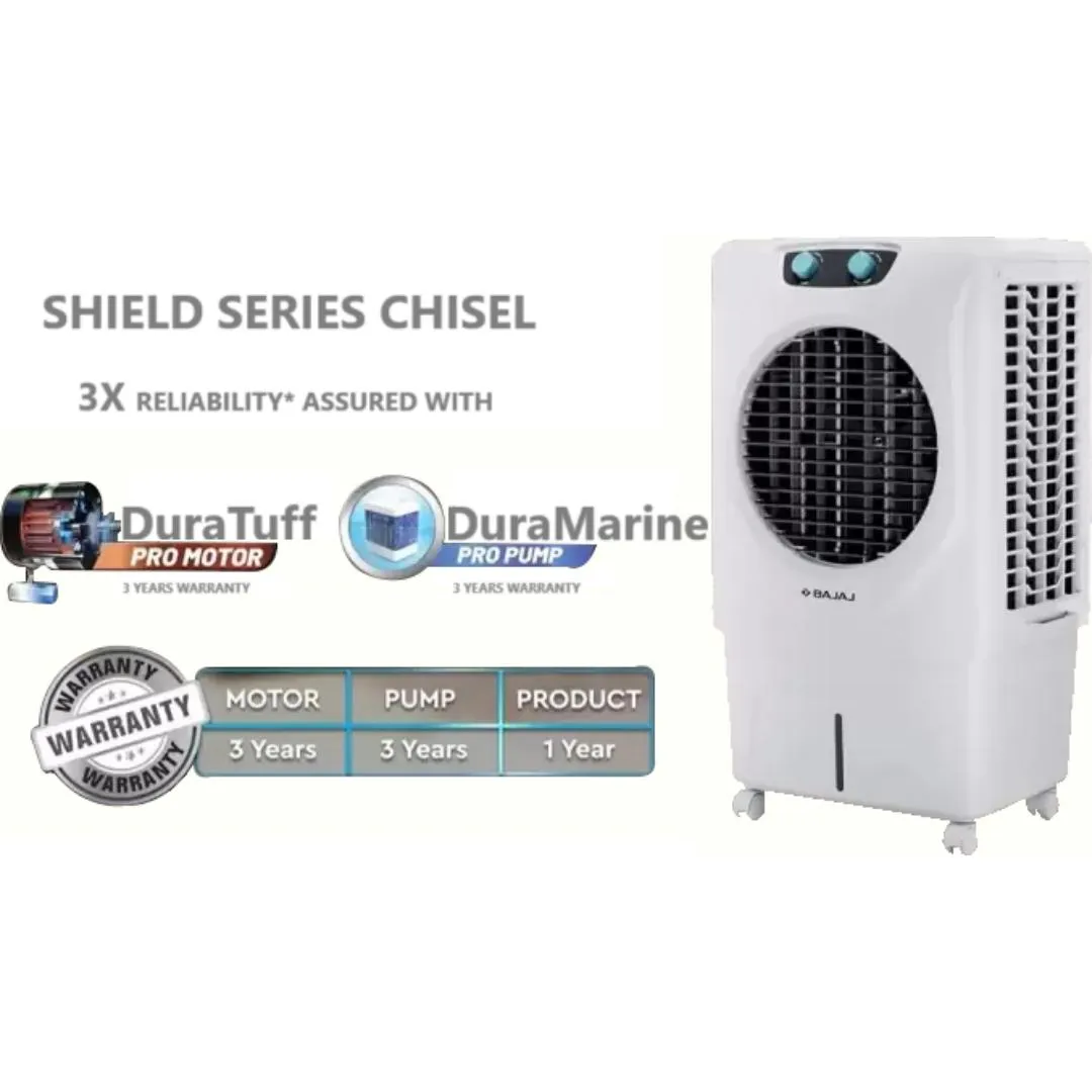 Bajaj AR Chisel 70L Desert Air Cooler is designed for powerful cooling in large rooms and halls. It features a large 70-litre water tank, high-efficiency honeycomb cooling pads and a strong blower that delivers high air circulation across wide areas. With 3 speed control options, this energy-efficient air cooler is ideal for homes, offices and living spaces.