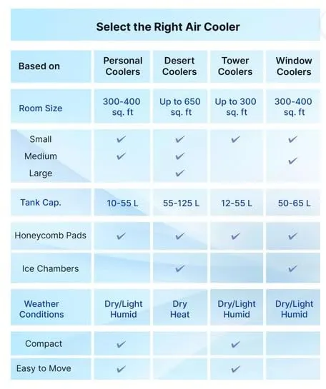 - Compact & portable air cooler for home use