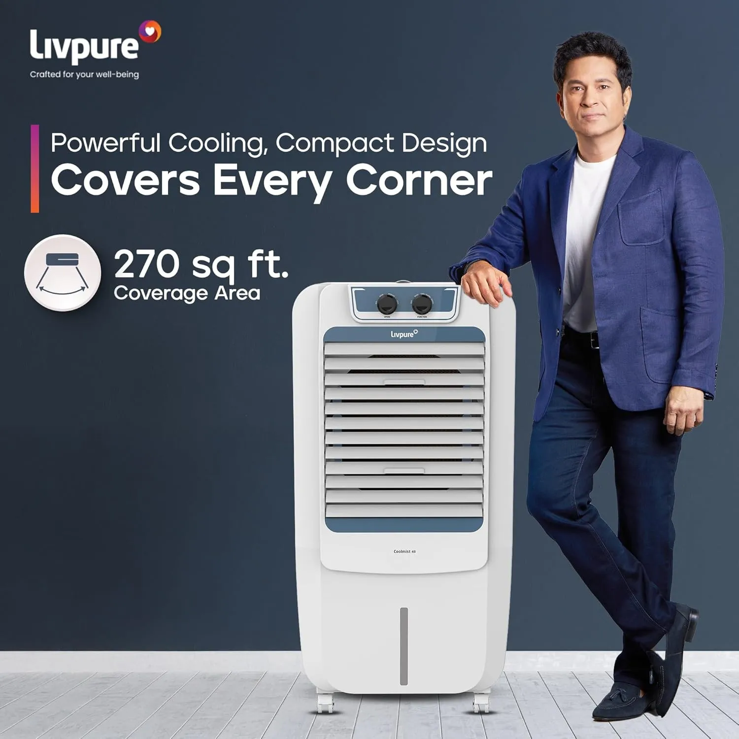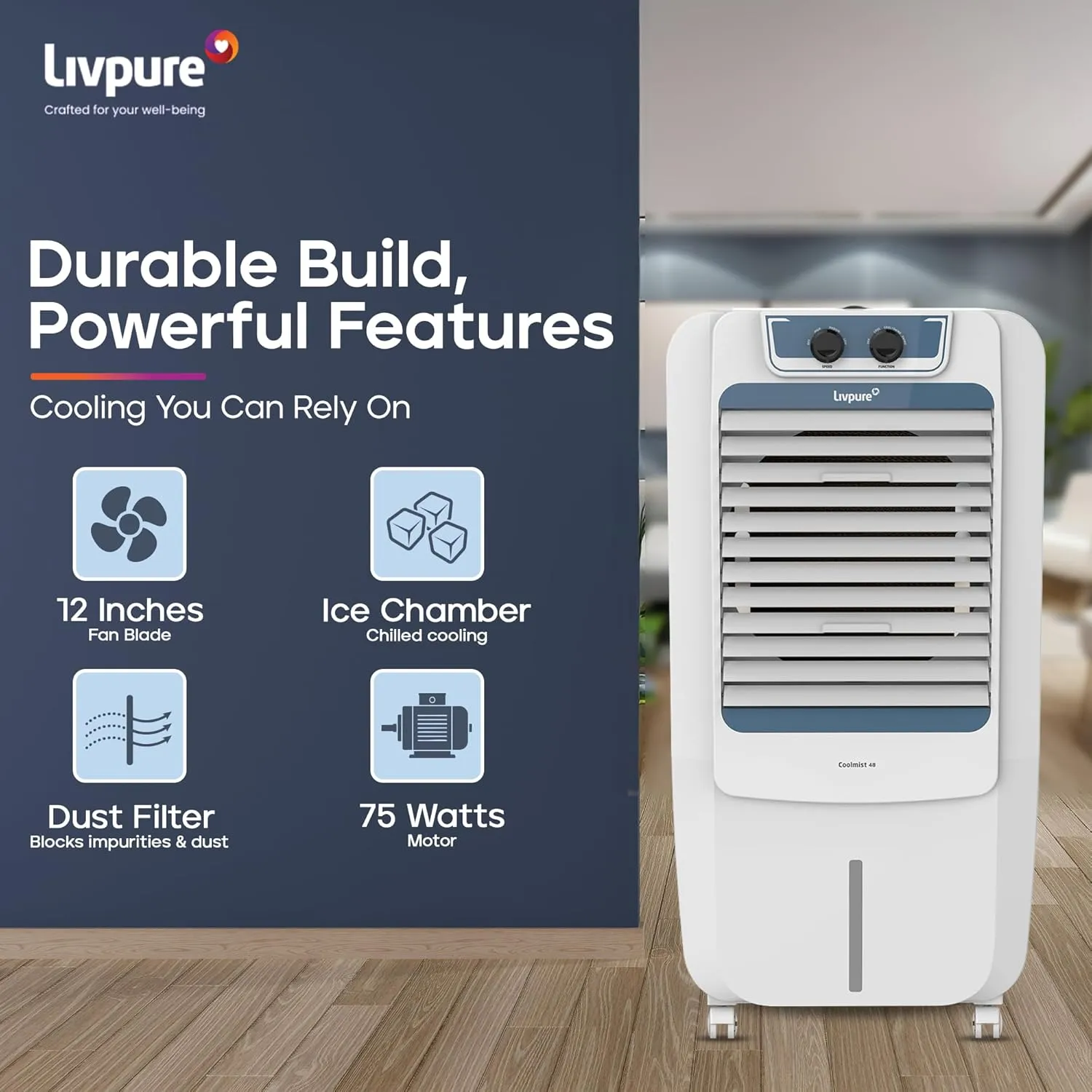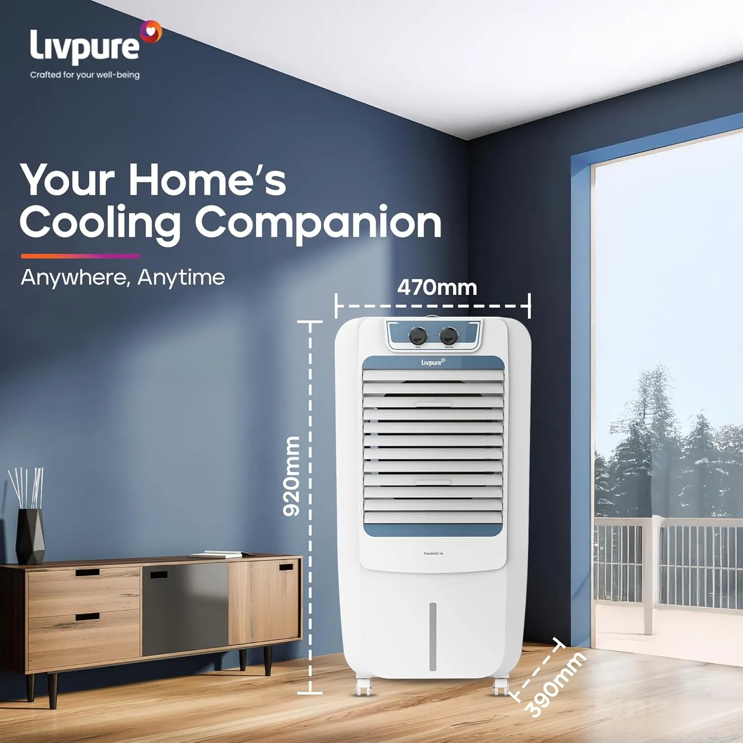 LIVPURE COOLMIST 48L Tower Air Cooler | 48 Litres Water Tank | Honeycomb Cooling Pads | High Air Delivery | 3 Speed Blower | Portable Room Cooler | White